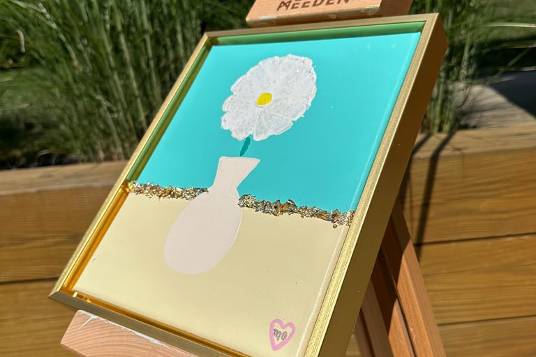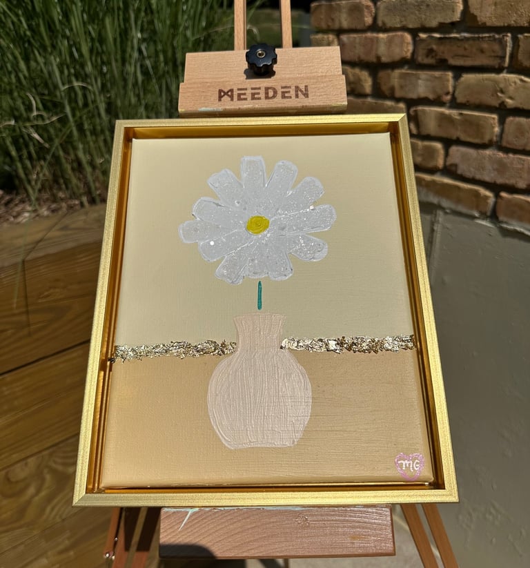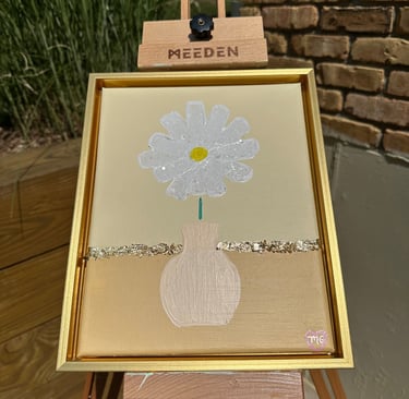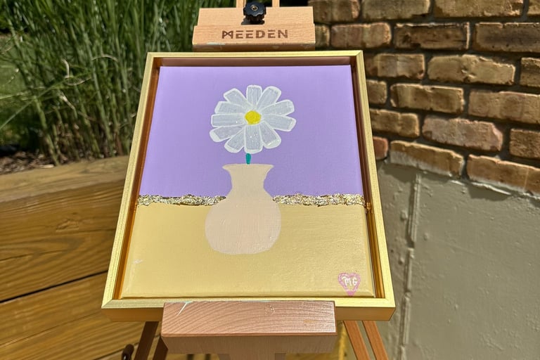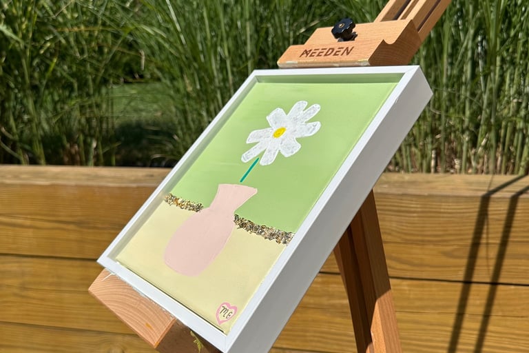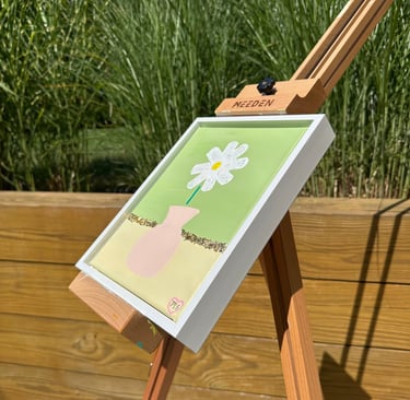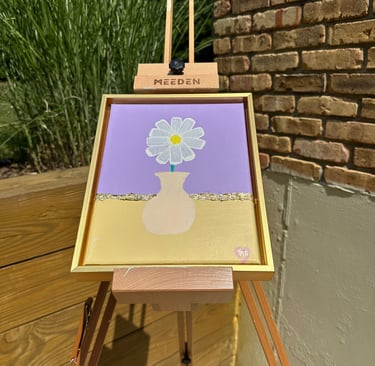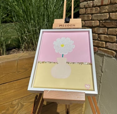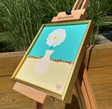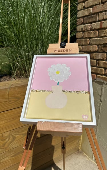 Discover 'Day Dream Daisy', a gentle artwork blending light pink, yellow, and lavender hues with a heartfelt story behind every piece.